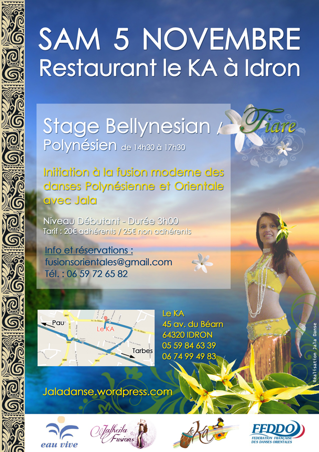L’association JALHEILA FUSIONS à le plaisir de vous annoncer son prochain stage BELLYNESIAN, avec Jala.