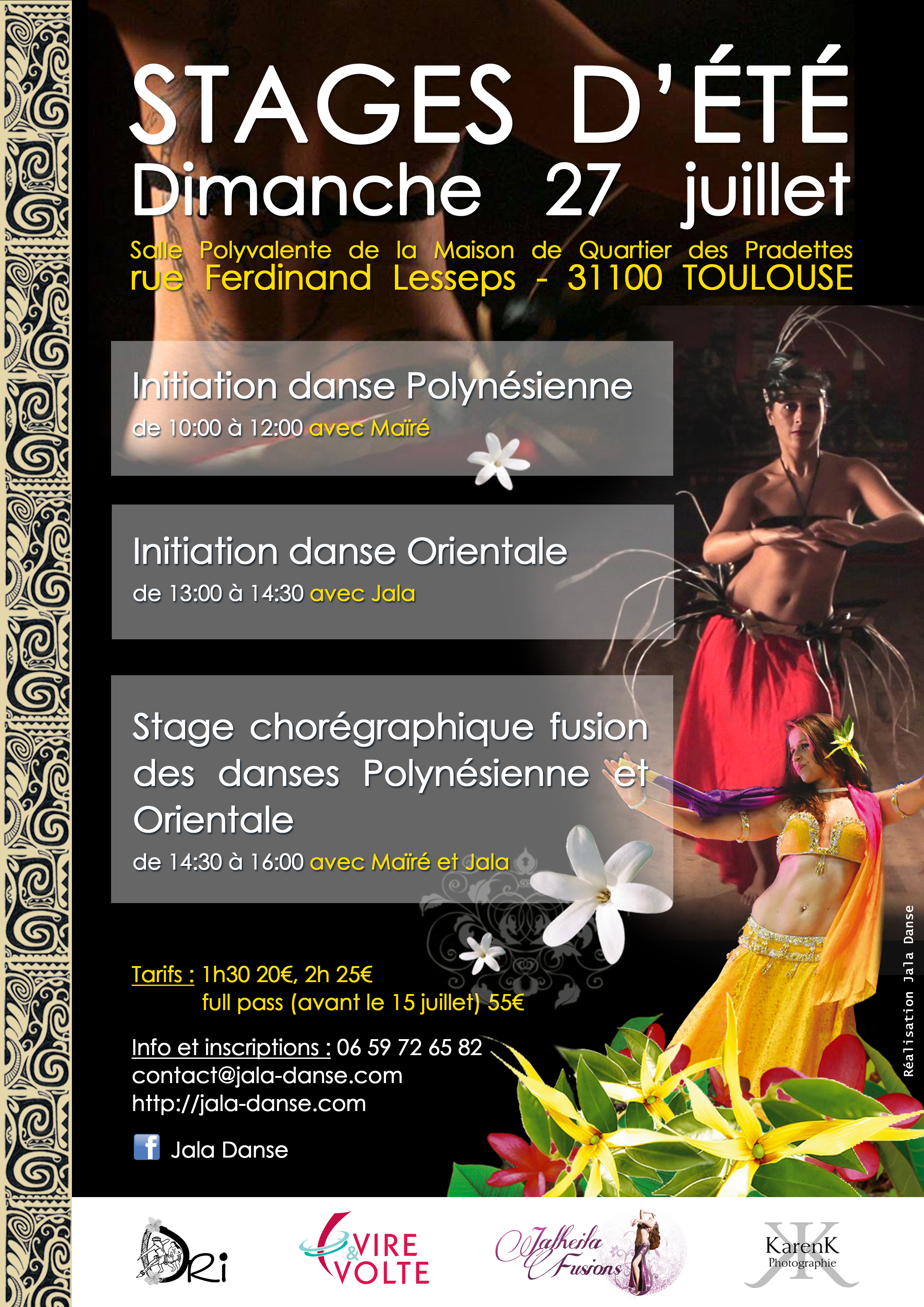 - Stage chorégraphique fusion des danses Polynésienne et Orientale, de 14:30 à 16:00 avec Maïré et Jala