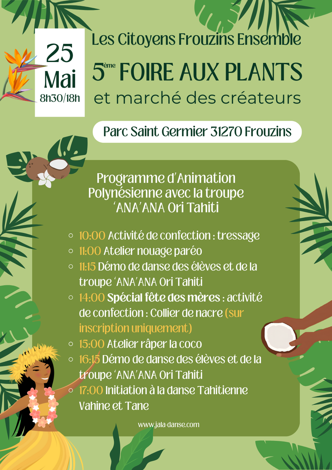 Retrouvez-nous pour la 3ème année consécutive pour la 5ème Foire aux plants et Marché de créateurs le 25 Mai 2025 au parc Saint Germier de Frouzins (31270).